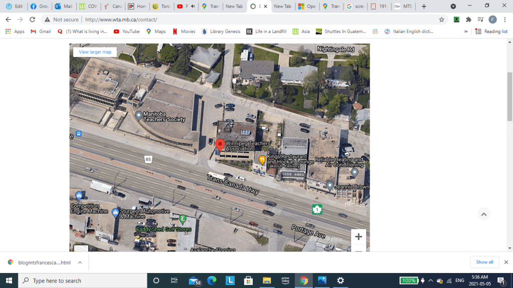 I made a photocopy of the letter at Shopper’s Drug Store along the way, and then was going to go to Laura’s place by cutting across from Portage Avenue, ironically between the Manitoba Teachers’ Society building (McMaster House), on the one hand, and the building where the MTS Disability Plan office was located (as well as the Winnipeg Teachers’ Association-see illustrations below).