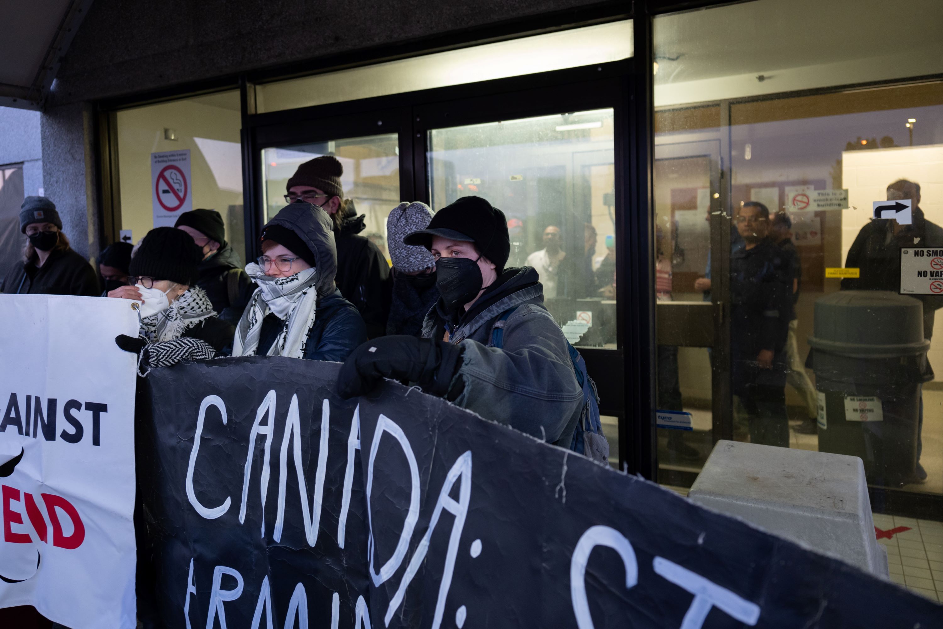John Clarke, former major organizer for the Ontario Coalition Against Poverty (OCAP), posted the on Facebook a follow-up article on the TTM Blockade. The following is from The Hoser ( https://www.thehoser.ca/posts/pro-palestinian-demonstrators-demand-arms-embargo-to-israel-blockade-scarborough-plant-exporting-military-equipment) rather than the Facebook post since the Facebook post contains some errors in pasting: