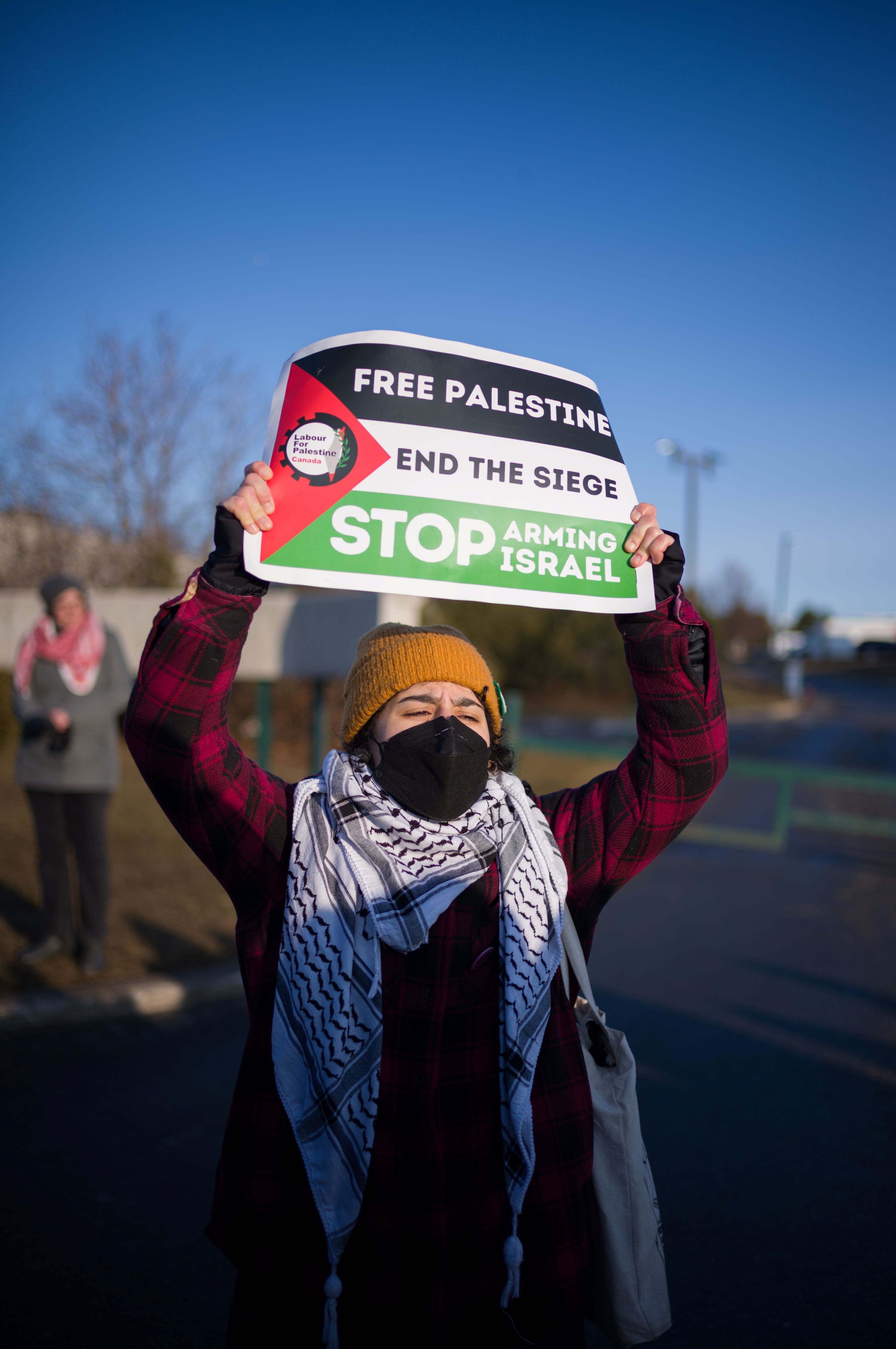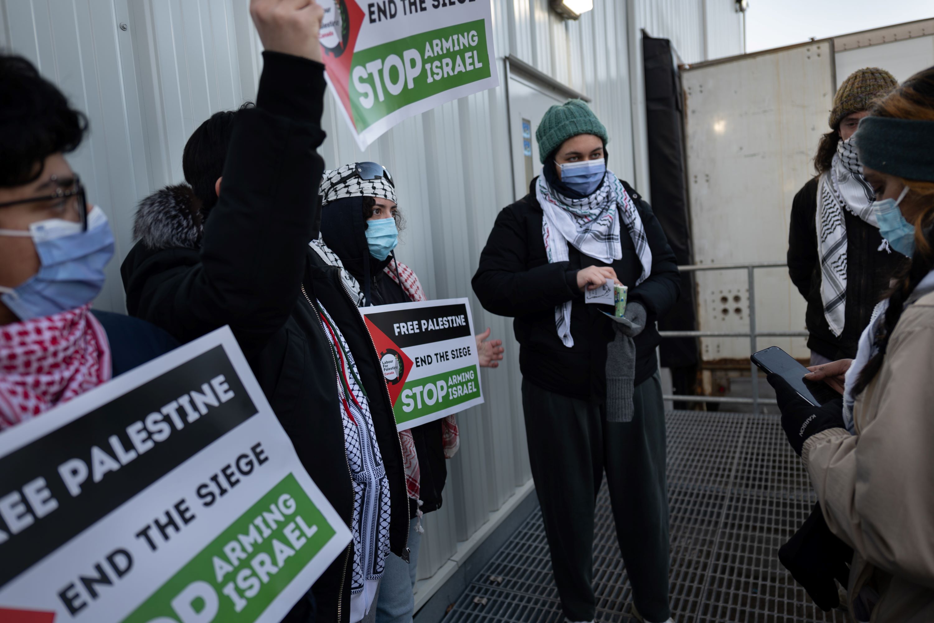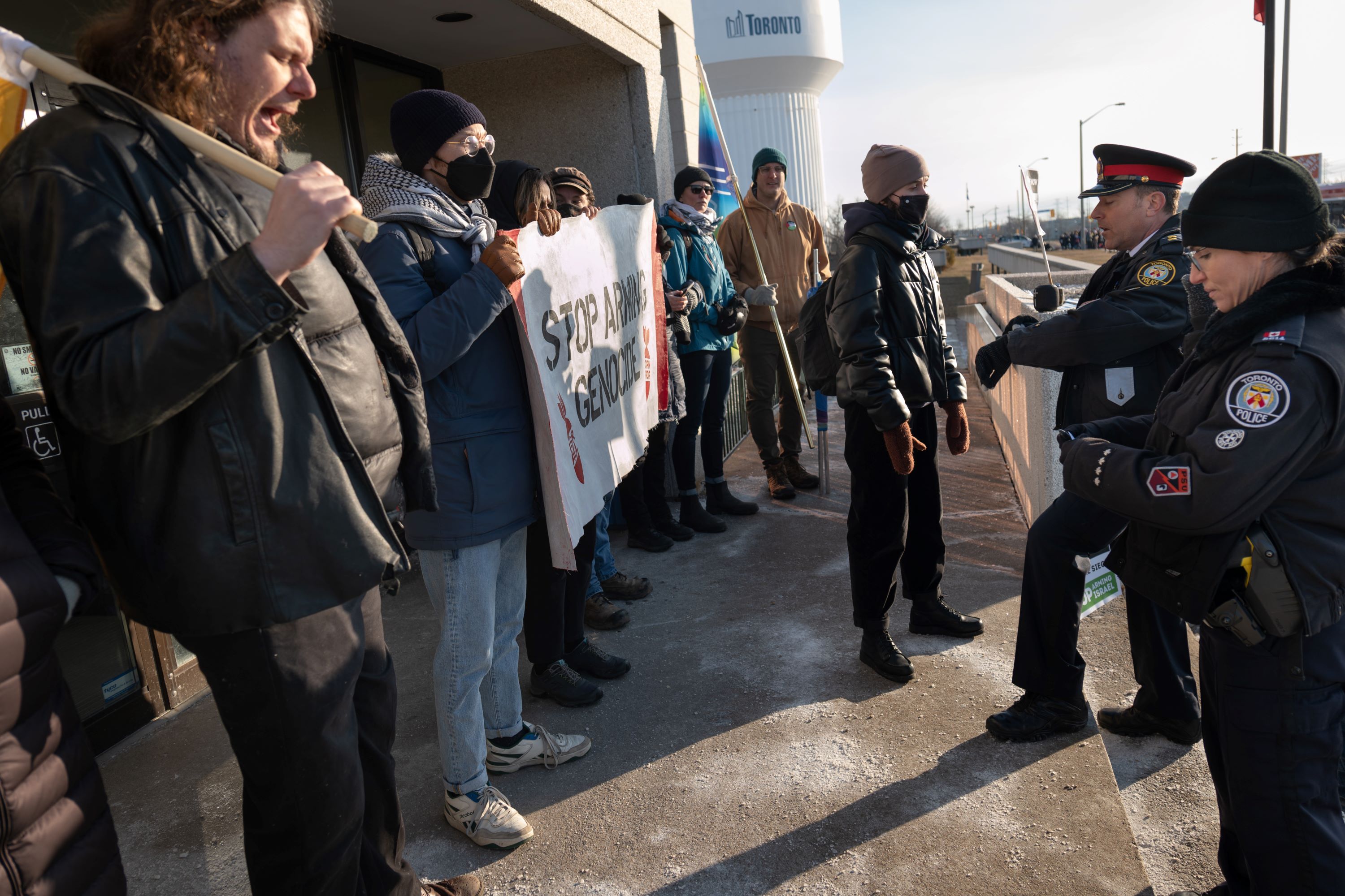 On Monday, dozens of pro-Palestinian demonstrators blocked the entrances to a Scarborough-based manufacturing plant that they say provides equipment to Israel’s military, while demanding a total arms embargo on Israel from the Canadian government.