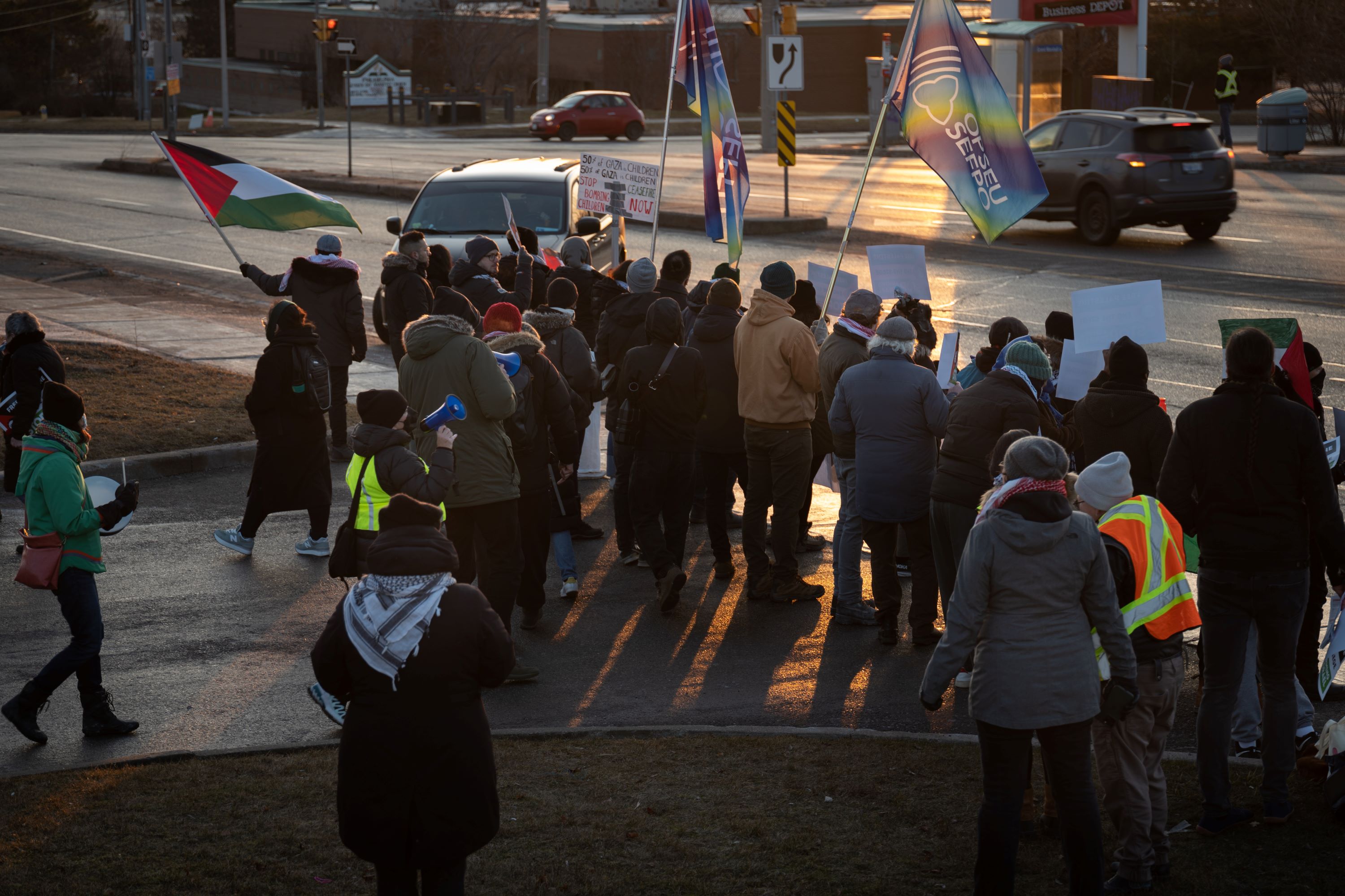 A vehicle attempted to cross a picket line as over 100 demonstrators blocked entrances to TTM Technologies in Scarborough, Feb. 26, 2023. The protesters targeted TTM for producing and exporting military circuit boards to Israel for fighter jets and targeted bomb systems. Photo by Ian WillmsThat call follows the January ruling by the International Court of Justice, which found that there is a “plausible” risk Israel is conducting a genocide in Gaza. Under the Genocide Convention of 1948, states are required to take all necessary steps to prevent a genocide from happening, including stopping arms exports.